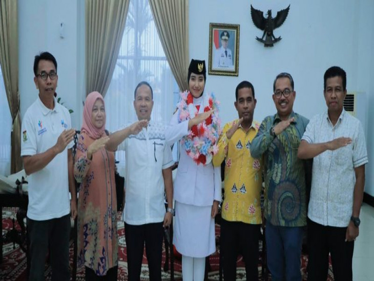 Duta Paskibraka Nasional di Ibukota Nusantara (IKN) tiba di Bandara Sultan Syarif Kasim II Pekanbaru Provinsi Riau, Pj Bupati Kampar, H. Hambali,SE,MBA,MH., yang di wakili kaban kesbangpol kab. kampar Mahadi dengan penuh kebanggaan bercampur hari menyambut kepulangan anggota Pasukan Pengibar Bendera Pusaka (Paskibraka) Nasional Karmilatun Nisa Siswa SMAN 2 Gunung Sahilan Kecamatan Gunung Sahilan kabupaten Kampar di Bandara VVIP Sultan Syarif Kasim II, Pekanbaru. Jumat Sore (23/8/2024)